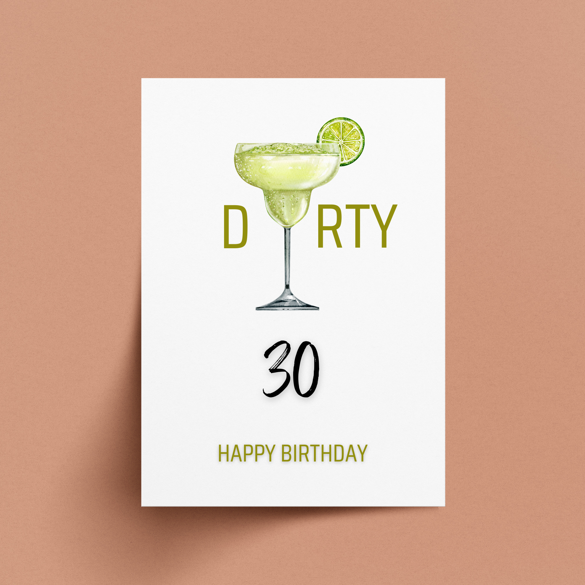 Geburtstagskarte „DIRTY 30“ – Lustige Cocktail-Karte zum 30. Geburtstag