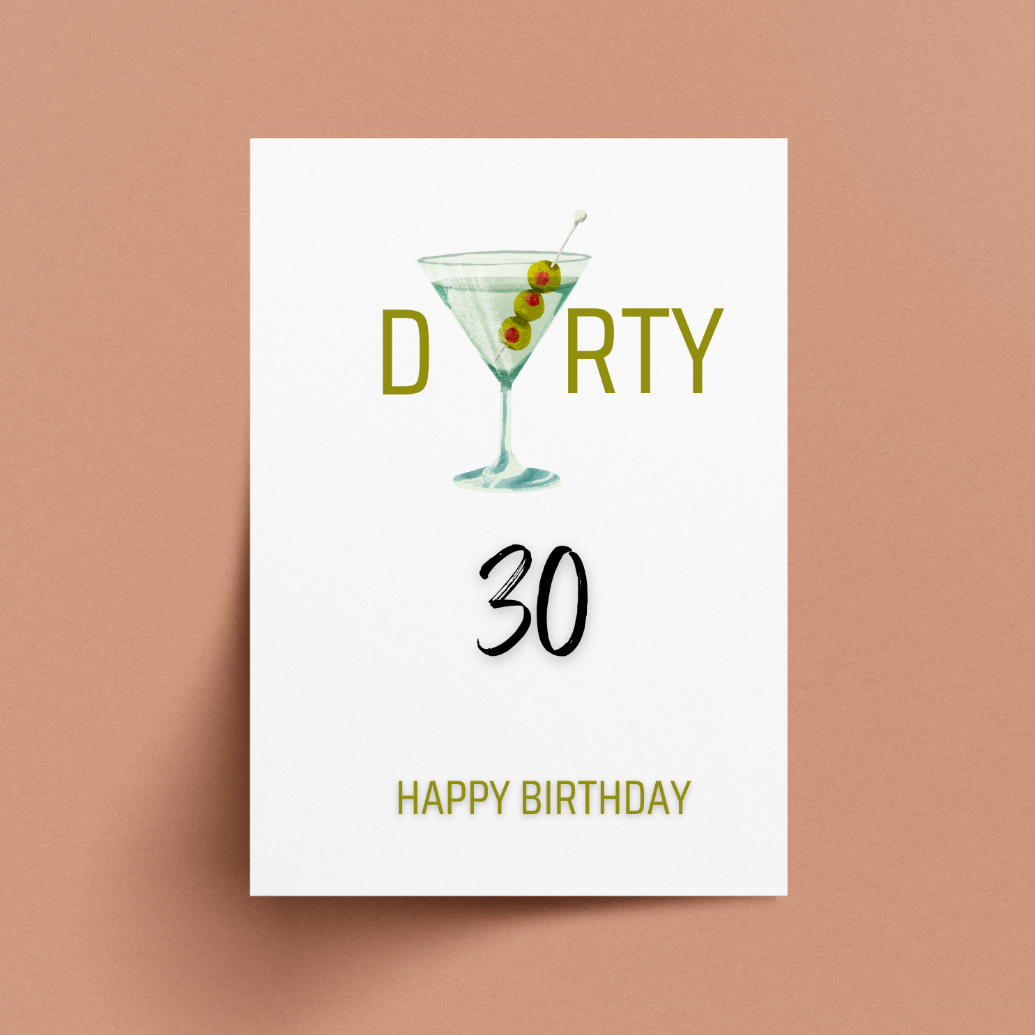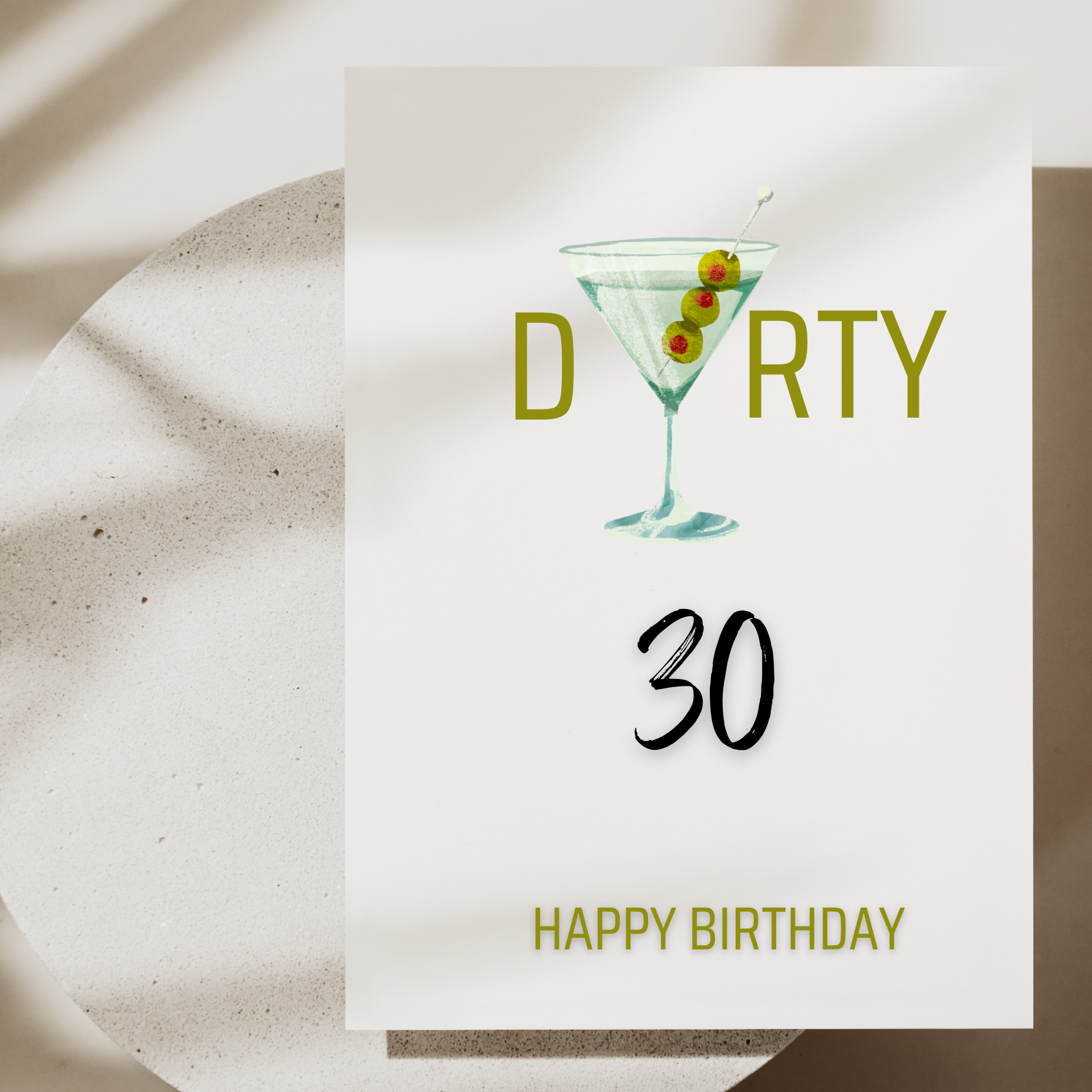 Geburtstagskarte „DIRTY 30“ – Martini-Edition für den besonderen Geburtstag