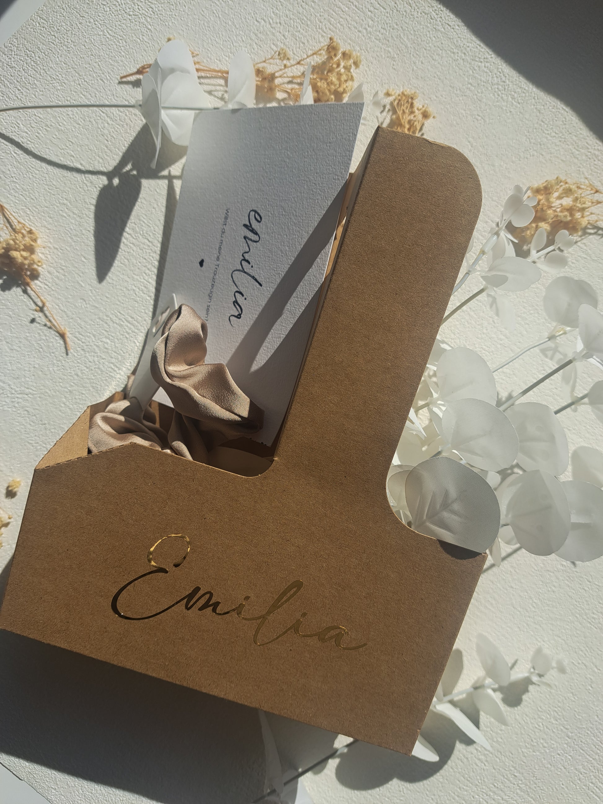 Personalisierte Geschenkbox für die Trauzeugin – mit Karte & Scrunchie