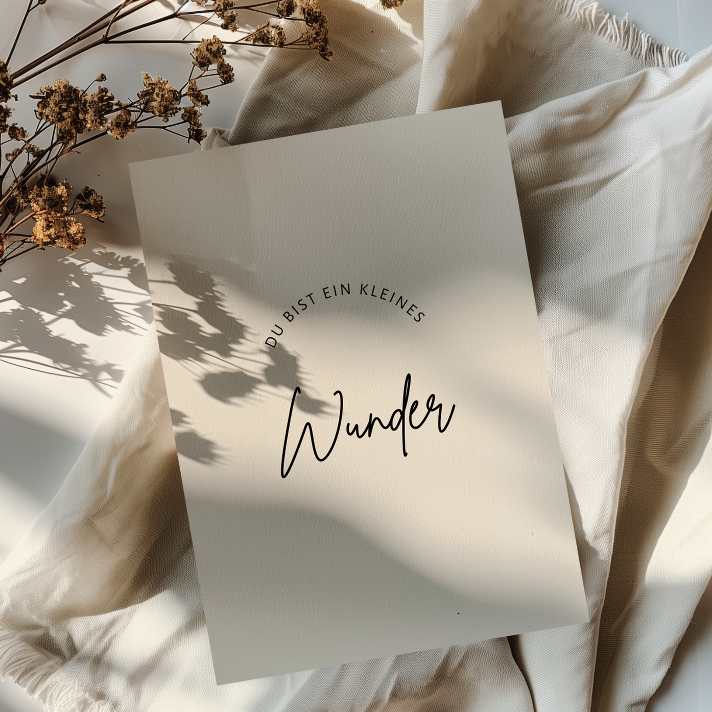 Ein neues Leben ist das größte Wunder! Unsere liebevoll gestaltete Geschenkkarte im A6-Format mit der Aufschrift „Du bist ein kleines Wunder“ ist die perfekte Ergänzung für Geburtsgeschenke oder zur Begrüßung des Babys.