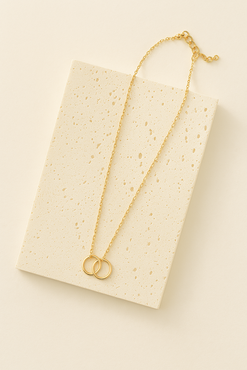 Goldene Modeschmuck Halskette mit zwei Ringen – Symbol für Verbundenheit & Eleganz. Diese zarte Goldkette mit Anhänger ist mehr als nur ein Schmuckstück – sie ist ein Ausdruck von Liebe, Zusammenhalt und zeitloser Eleganz. Die beiden ineinandergreifenden Ringe stehen für eine besondere Verbindung – perfekt als Geschenk für deine Liebsten oder als stilvolles Accessoire für dich selbst.