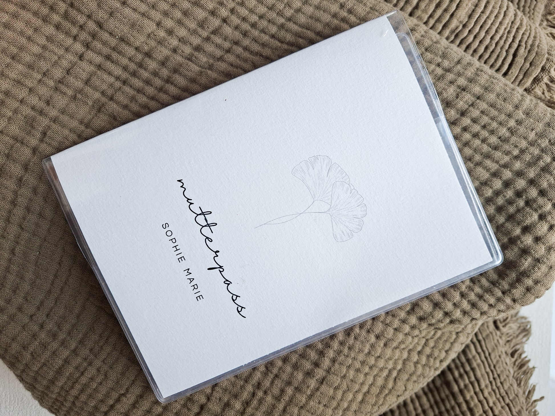 Schütze deinen Mutterpass stilvoll und individuell! Unsere hochwertige Mutterpasshülle ist die perfekte Begleitung für die spannende Zeit der Schwangerschaft. Mit ihrem minimalistischen Design und dem zarten Ginkgo-Blatt-Motiv ist sie nicht nur praktisch, sondern auch ein echter Hingucker.