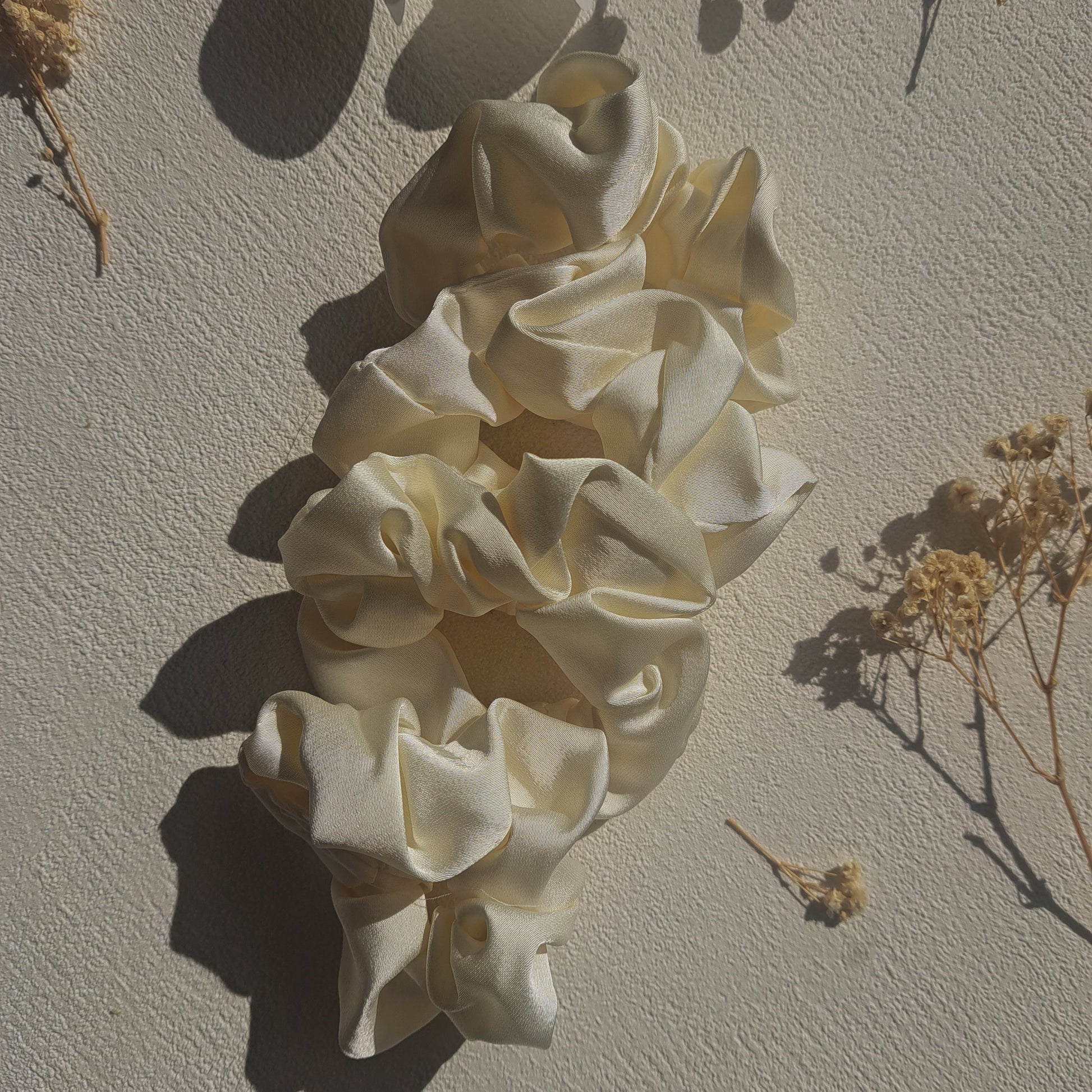 Scrunchie Ivory Dream – Elegante Satin-Haargummis in Cremeweiß