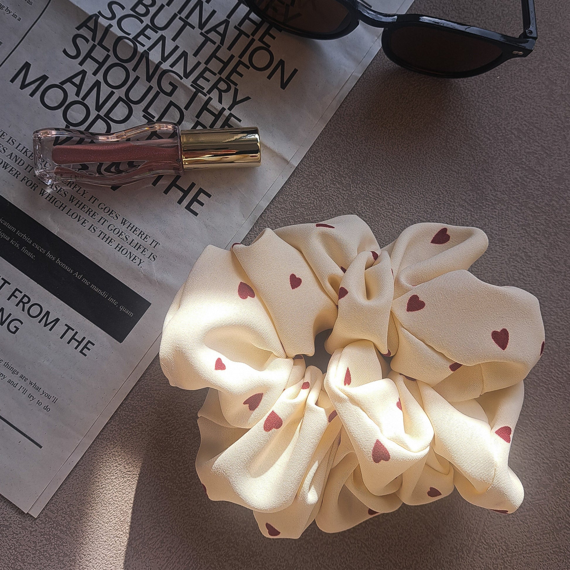 Scrunchie Beige mit Herzen – Stilvoll & Verspielt