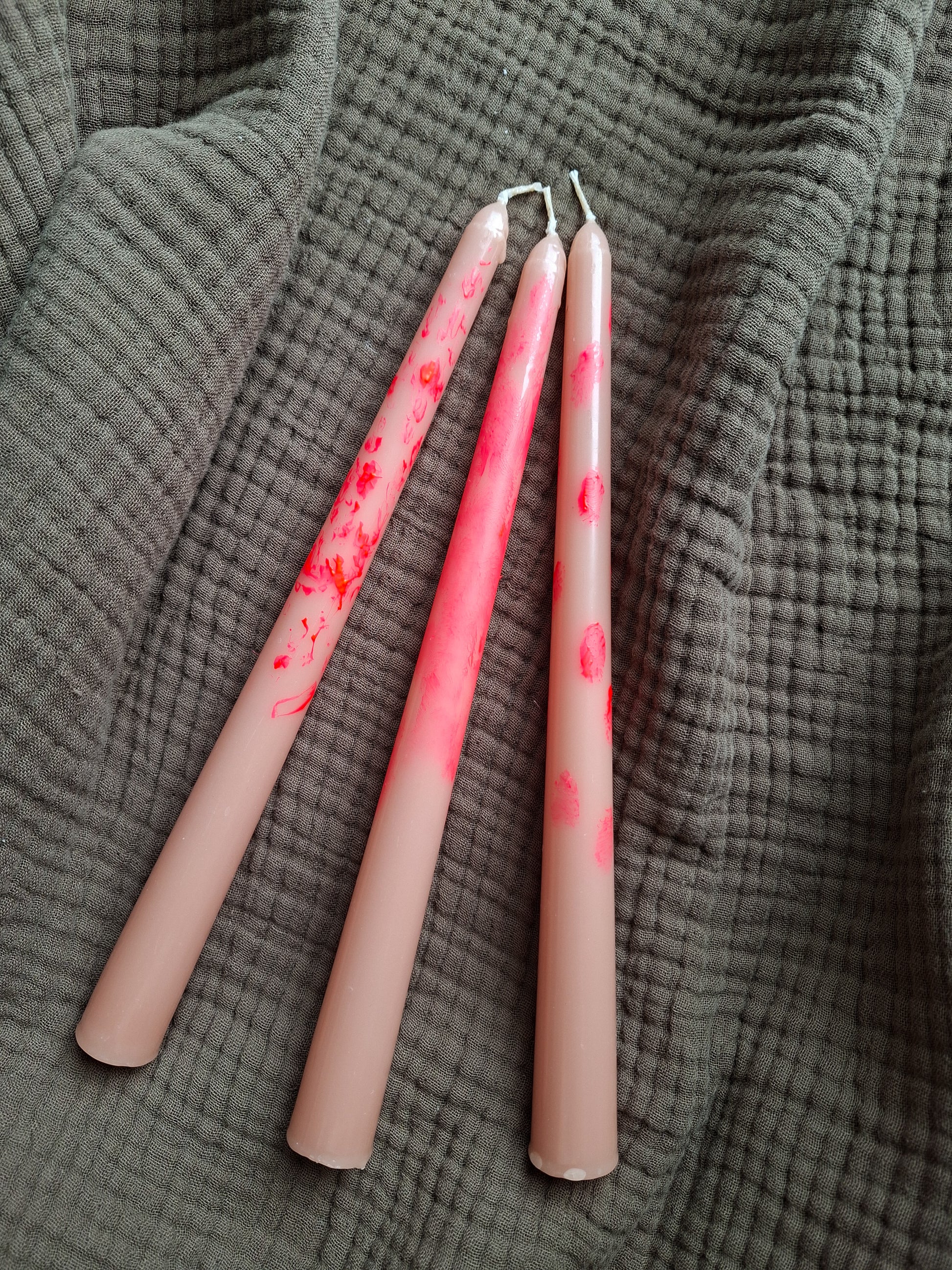Ob als Deko für den Esstisch, als Geschenk oder einfach, um dir selbst eine Freude zu machen – diese Kerzen bringen Farbe und Leichtigkeit in deinen Alltag!