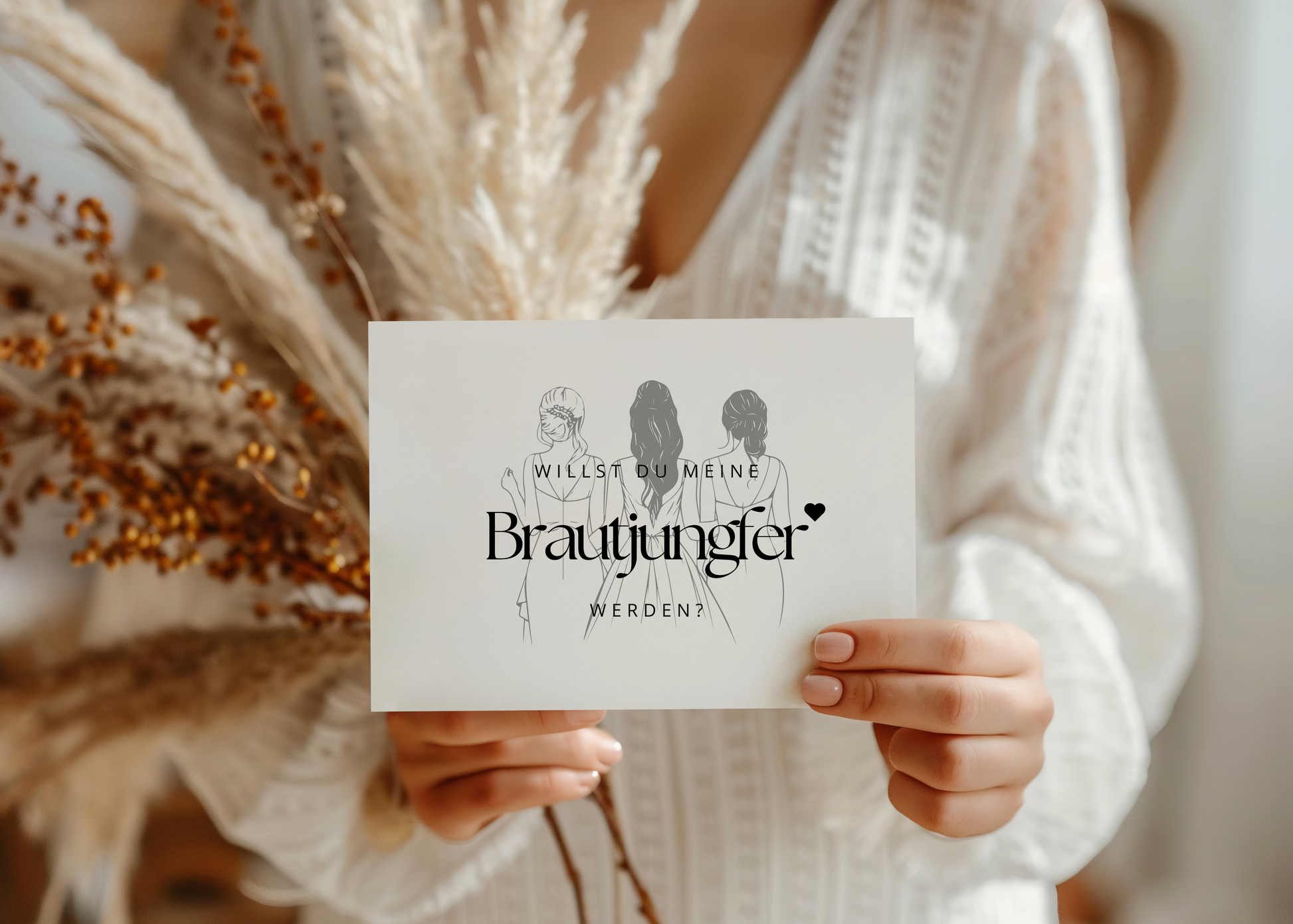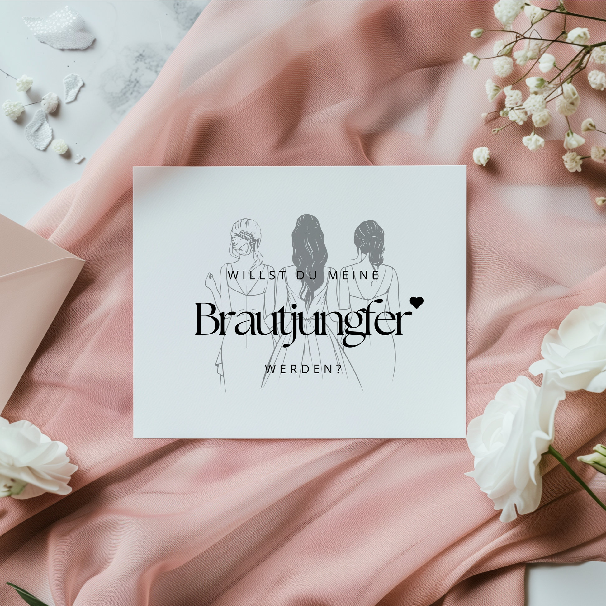 Ideal für deine Brautjungfer-Anfrage oder als Teil eines Hochzeitspakets. Verschenke diese Karte als Erinnerung an einen besonderen Moment und beginne gemeinsam mit deinen Brautjungfern die Reise zu deinem großen Tag!